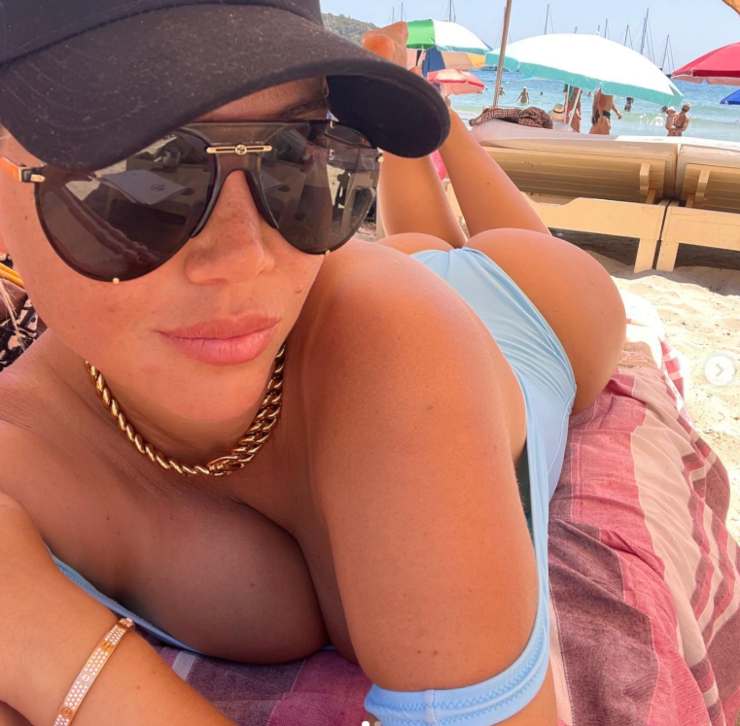 Costume azzurro cielo a pezzo unico, stesa sul lettino, fotocamera frontale ed inquadratura da urlo. Nella didascalia: “Preferite con o senza occhiali?” con al fianco l’emoticon delle ciliegie. Difficilmente i followers avranno notato gli occhiali da sole, spostando il focus su ben altro.